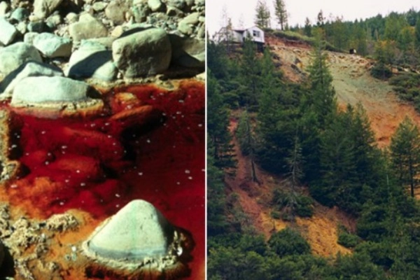 Years of over-mining cracked the mountain wide open, letting deep minerals mix with rain and air to create deadly acidic runoff. This stuff can eat through fabric and burn your skin in the blink of an eye.